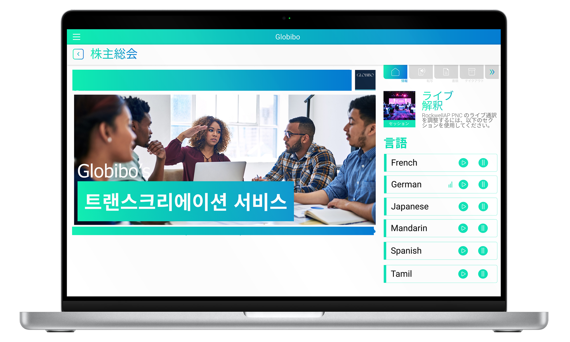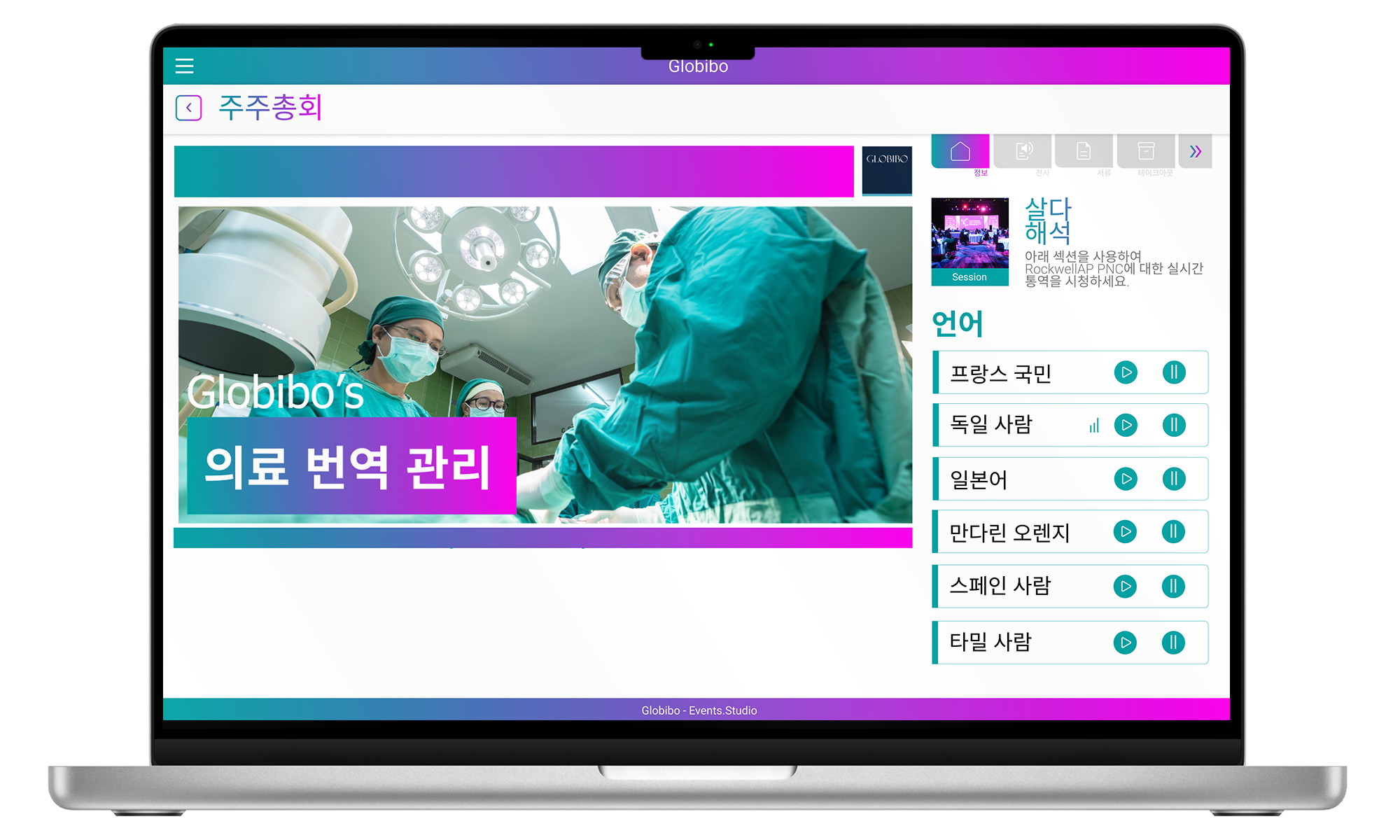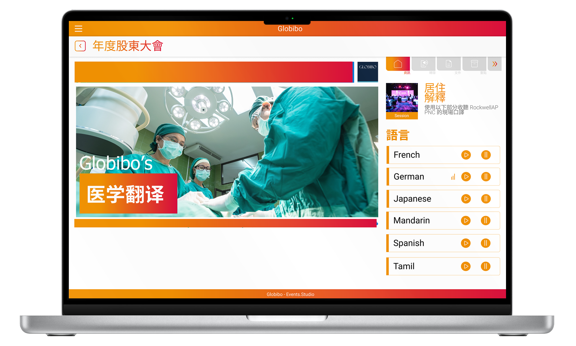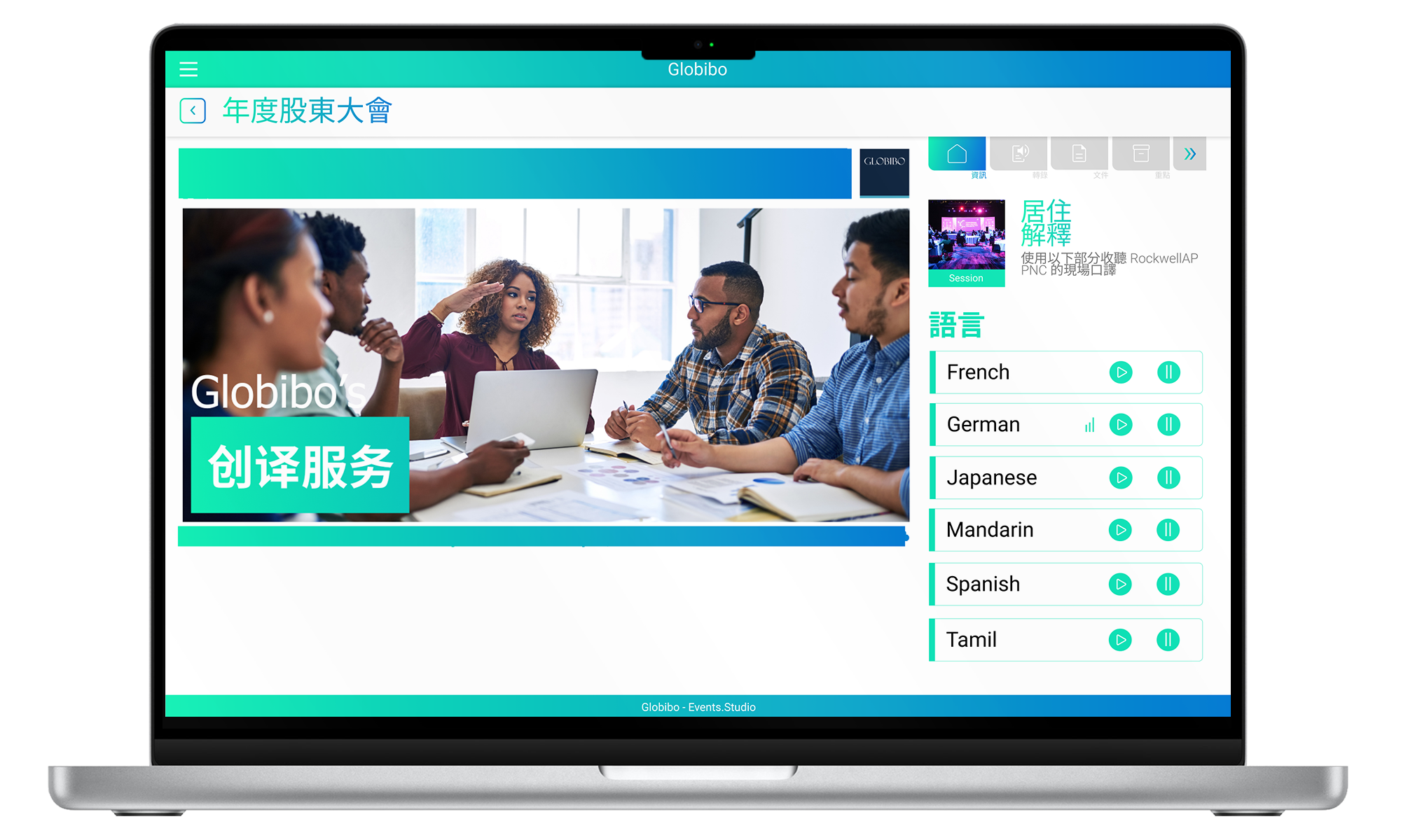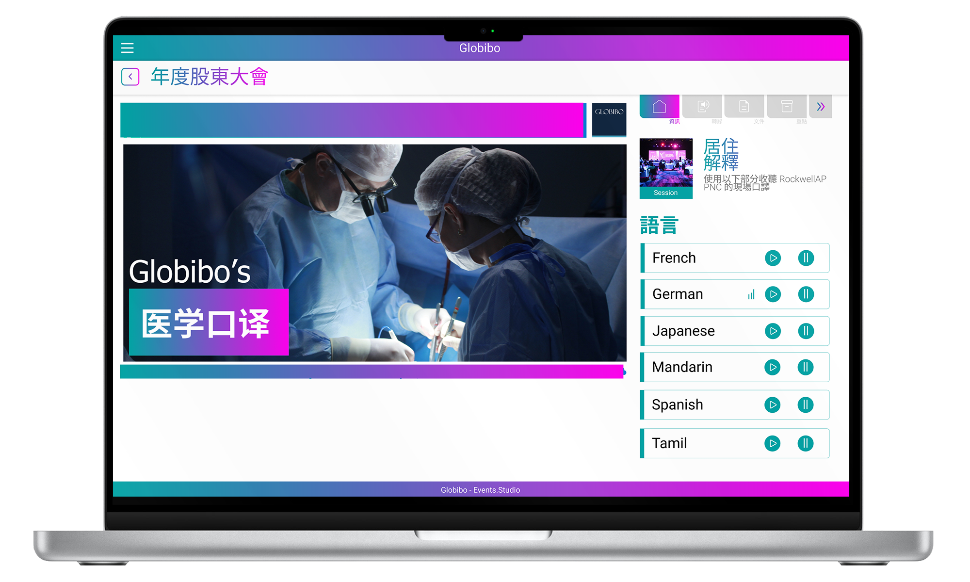 For a 100+ delegate conference in Bali, Globibo enabled remote interpretation via Events.Studio, allowing participants to use personal devices instead of traditional equipment.