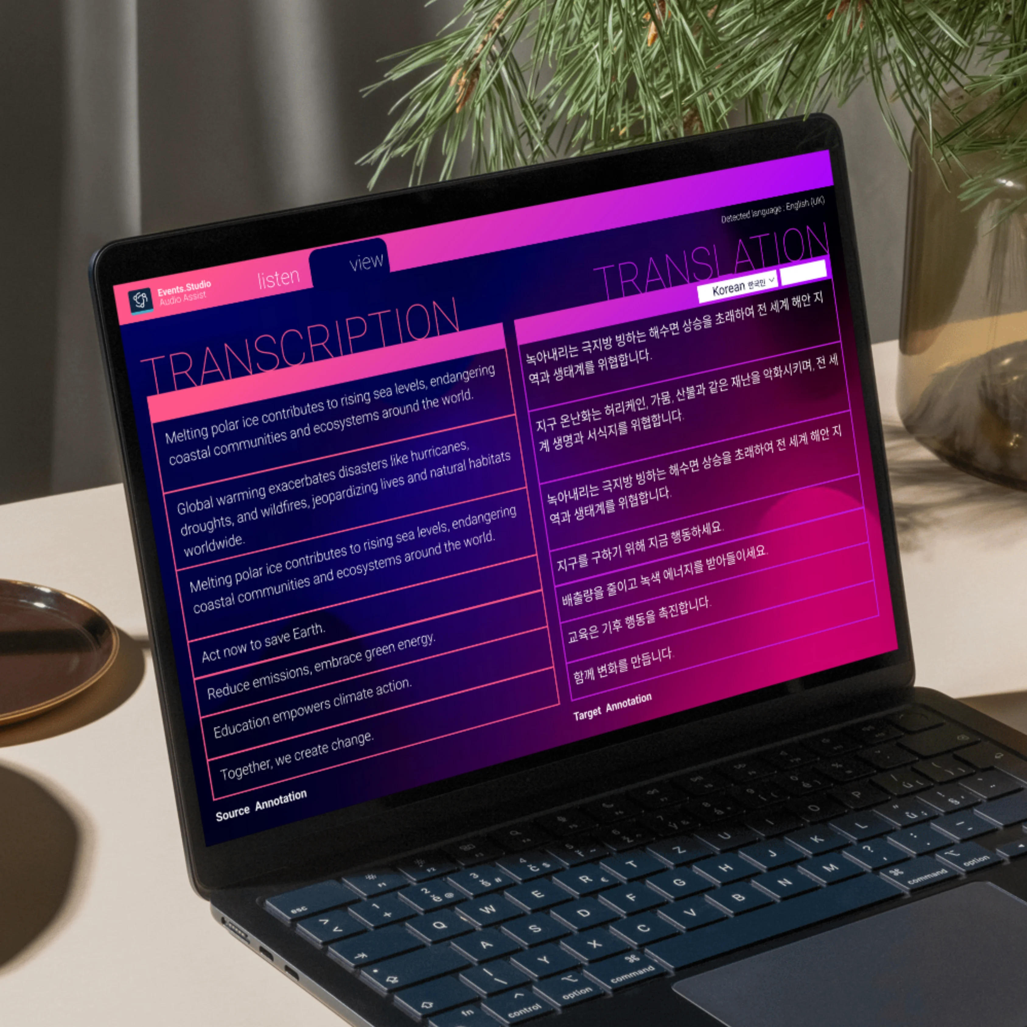 Hybrid Support: On-site users accessed interpretation through a lightweight app; backup audio was managed from the Singapore office due to venue limitations.